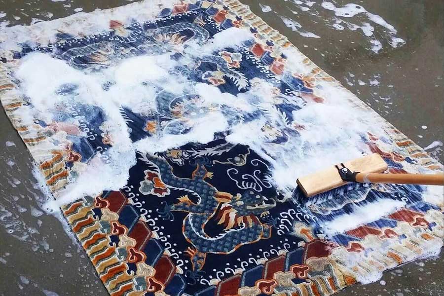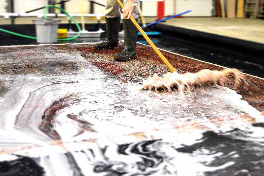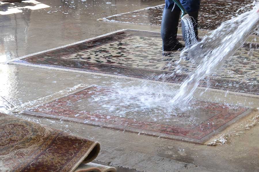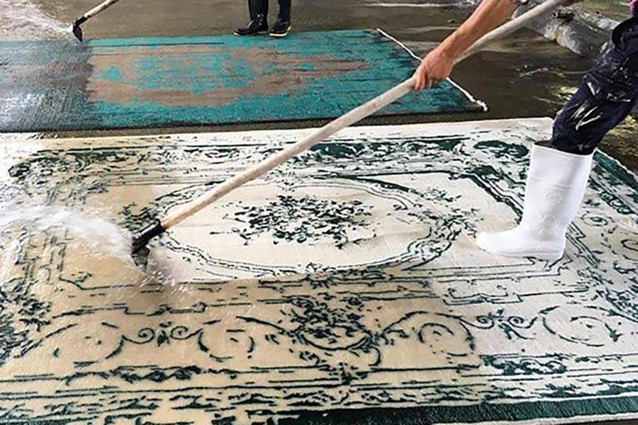 ۴. شستشوی فرش با مواد شوینده مخصوص گیاهی. (شستشی فرش با شورهای گیاهی و ارگانیک برای جلوگیری از بهم ریختگی رنگ های استفاده شده در نخ فرش)